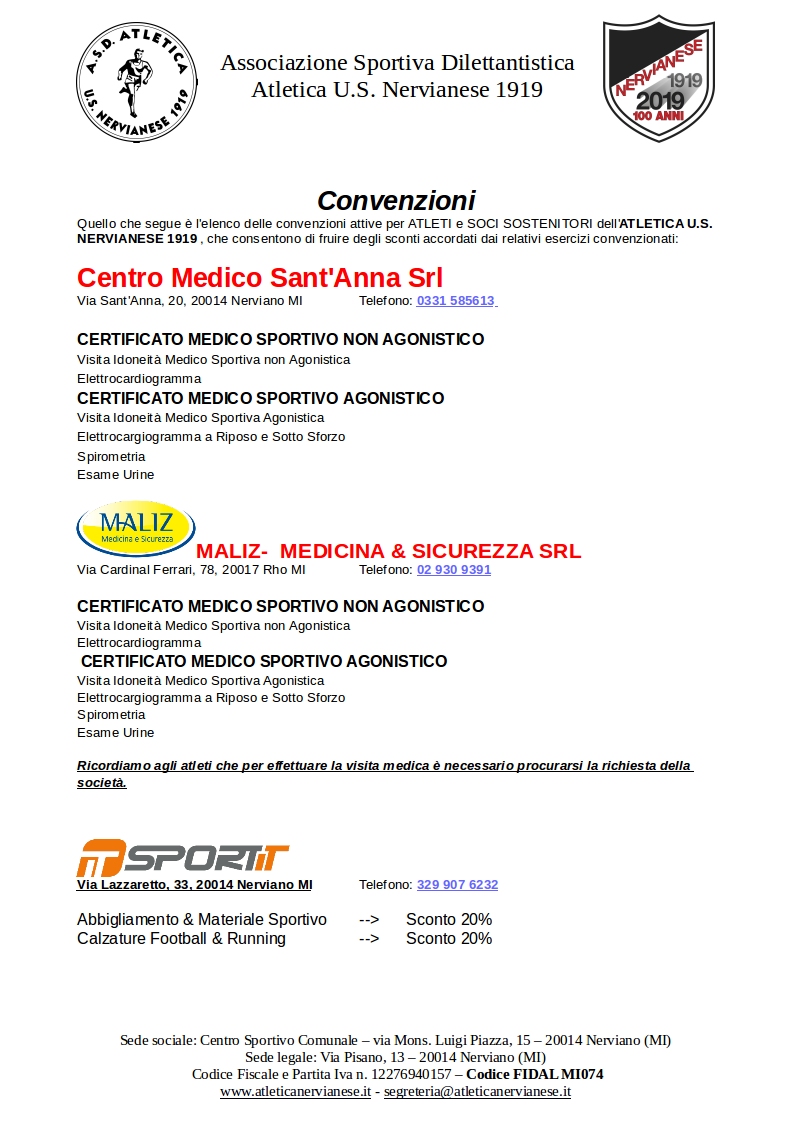 L'atletica Nervianeseche ha sempre fatto parte dell'Unione Sportiva Nervianese fin dal momento della sua fondazione risalente al 1919 e cioè da più di 100 anni, unisce persone di ogni età, adulti,ragazzi,bambini con un unico spirito: aggregare persone appassionate di podismo e atletica rifacendosi al rispetto dell’etica e della lealtà come valori e concetti fondamentali della pratica sportiva.